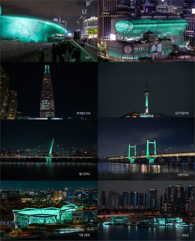 서울시 각종 시설물에 반영된 그린 오로라. 서울시 제공