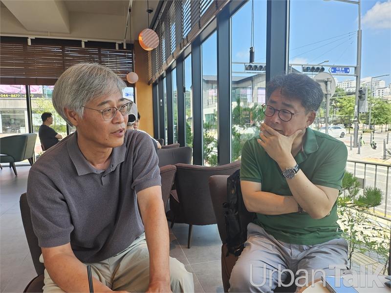 어반톡 이형철 대표와 대담중인 이우걸 숲인들 전무.