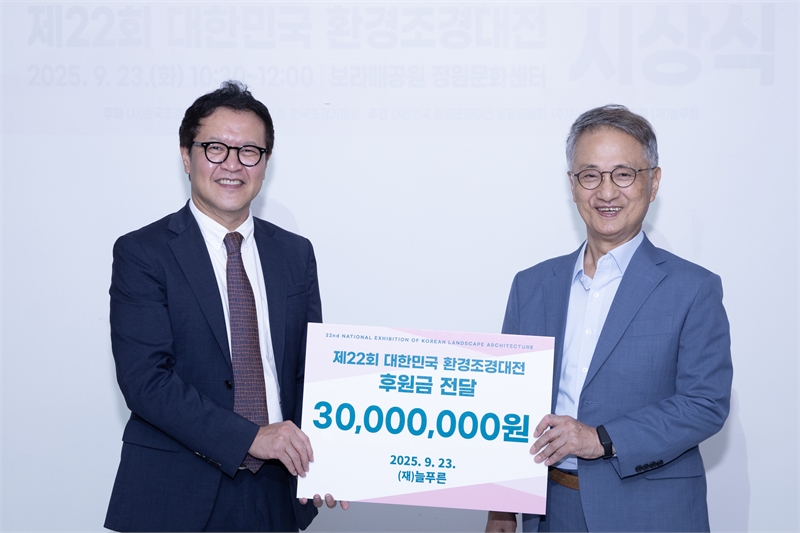 2005년부터 대회를 후원해온 늘푸른재단 노연상 이사장은 “인간과 자연의 공존을 인문학적 관점에서 풀어낸 학생들의 독창적 상상력에 찬사를 보낸다”며 3천만 원의 후원금을 한국조경학회에 전달했다.