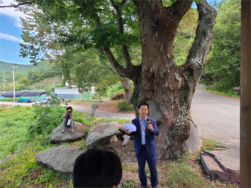 대초리 느티나무의 오랜 역사를 전해주고 있는 김길수 회장. 김길수 제공