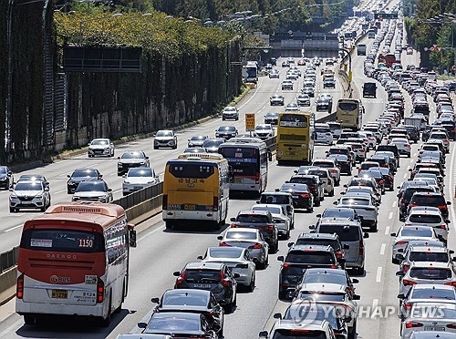 지난해 추석날(9월17일), 경부고속도로 서울 시내 구간이 이동하는 차량으로 혼잡한 모습