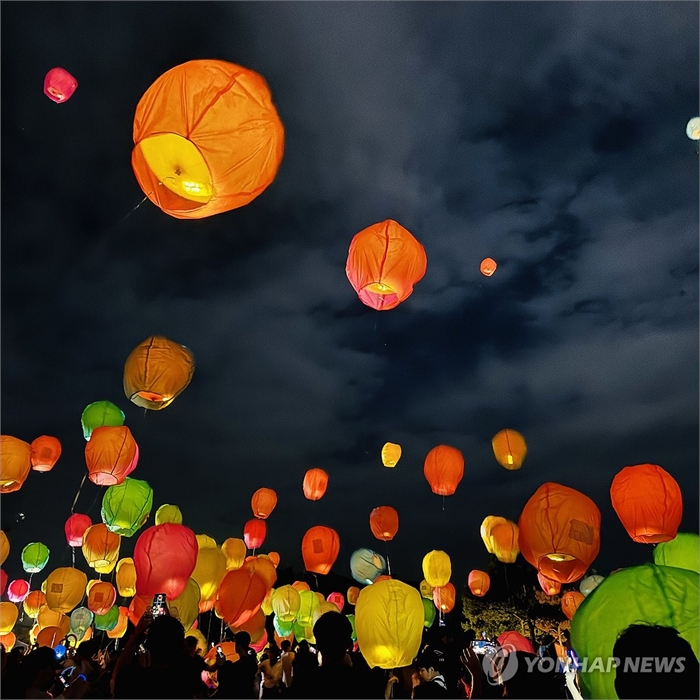 전주에서 온 김승희(41)씨는 "가족의 건강과 안녕을 적은 소원문을 작성했다"면서 "보름달이 뜬 밤하늘을 알록달록한 소원등이 가득 메운 광경을 보니 꼭 소원이 이뤄질 것 같다"고 말했다./연합뉴스