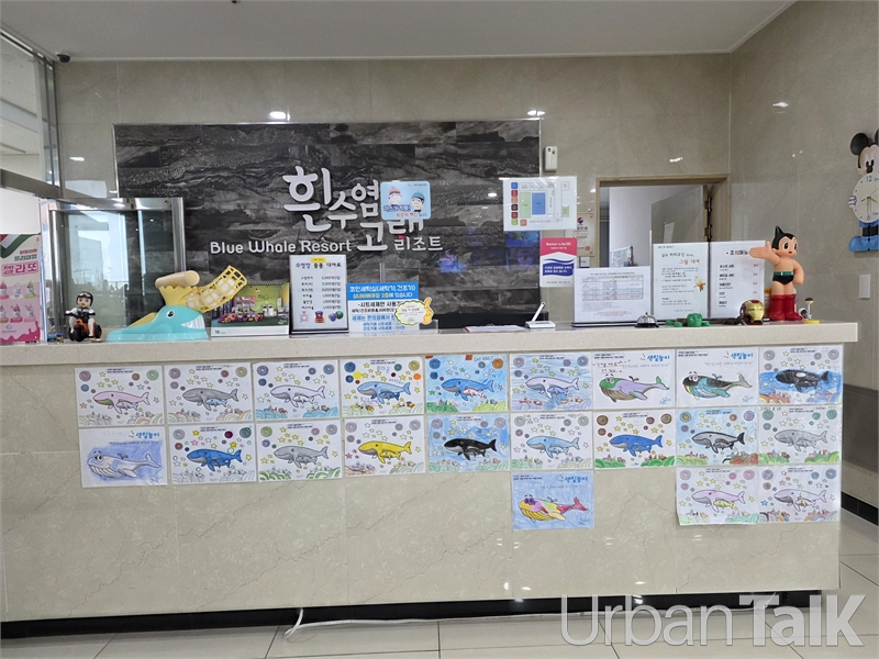 로비에는 다녀간 어린이 고객들의 고래 그림이 연중 전시돼 있다.
