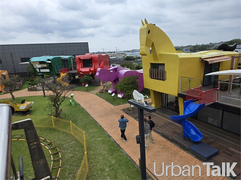 다양한 동물 형태의 숙소는 어린이 고객들이 특히 좋아한다. 미끄럼틀을 통해 2층에서 내려오는 색다른 즐거움이 있다.
