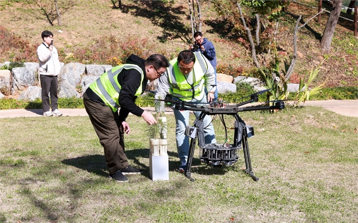 사람이 직접 나무를 심던 기존 방식을 넘어 드론으로 더 빠르고 정확한 산림 복원을 실현하겠다는 취지다.