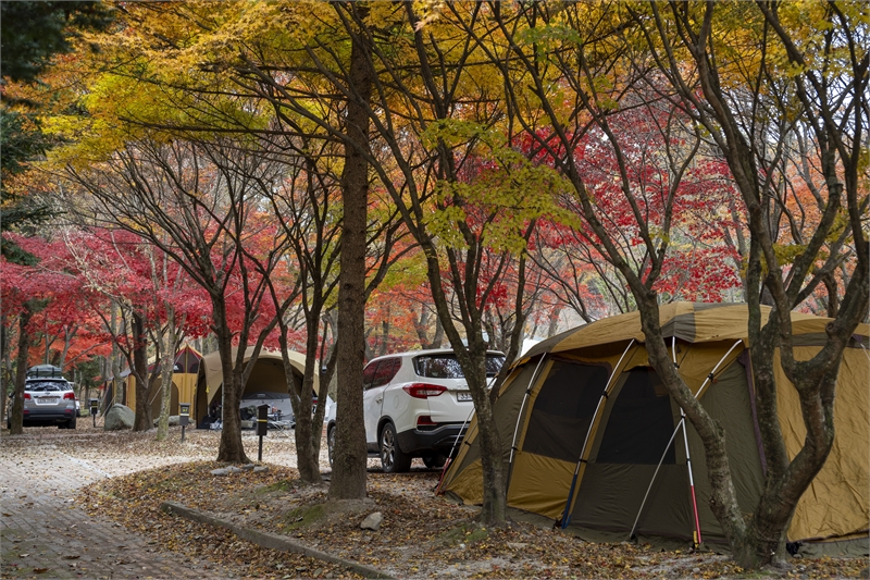 관광객들이 차박을 하면서 단풍 시즌을 즐기는 구천동계곡. 이재순 제공