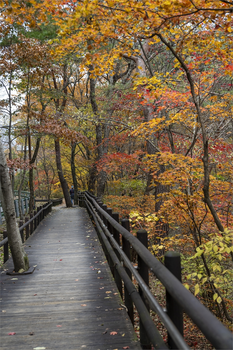 원시림의 자연 그대로의 모습도 구천동 단풍의 특별함을 더한다. 과도한 개발 없이 자연 그대로 보존된 숲길을 따라 걷다 보면 인월담, 구월담, 안심대 등 33경의 비경들이 굽이굽이 이어진다. 특히 구천동 어사길은 조선시대 어사 박문수가 걸었다는 역사적 의미까지 더해져 단순한 단풍 감상을 넘어 문화와 역사를 함께 느낄 수 있는 공간이다.