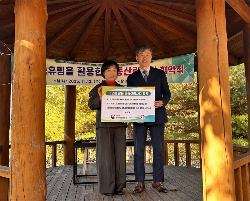 중부지방산림청은 12일, 사회적기업 ㈜오감통통숲앤아이와 국유림을 활용한 공동산림사업 협약을 체결했다.