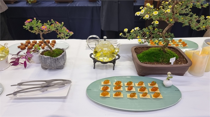 국화 분재와 야생화에 한식 다과 상차림과 국화차를 곁들여 맛과 멋을 보탰다.
