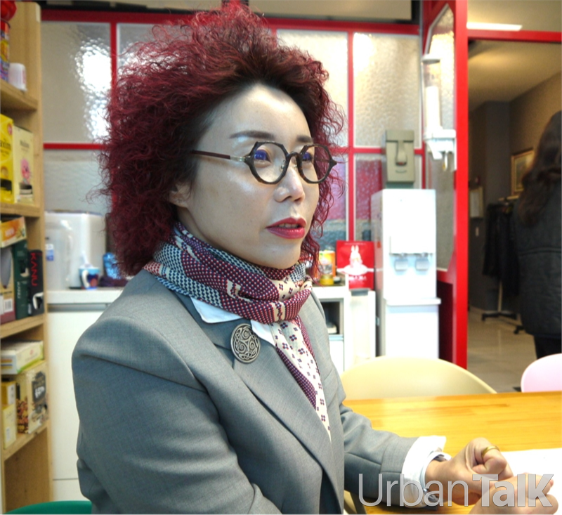 어반톡 취재진과 인터뷰 중인 신 대표(오른쪽)