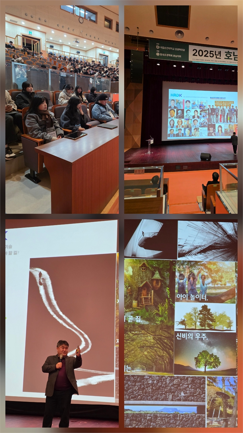 광주·전남·전북 7개 대학 졸업작품전을 겸한 행사에서 김 연구원은 조경학과 재학생 아들을 둔 부모이자 산업계 선배로서 진로에 고민이 많은 학생들에게 자격증 제도의 중요한 변화와 진로 전략을 상세히 설명했다. 탄소중립 시대 녹색 일자리 창출이라는 국가 정책 방향과 조응하는 김 책임 연구원의 특강 내용이 새롭게 조명되고 있다.