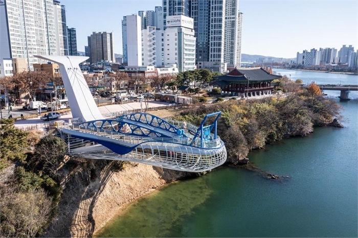 울산 태화강 위에서 인근 국가정원을 비롯해 수변 경관을 한눈에 즐길 수 있는 '태화루(용금소) 스카이워크'가 완공돼 오는 24일부터 시민과 관광객을 맞는다.