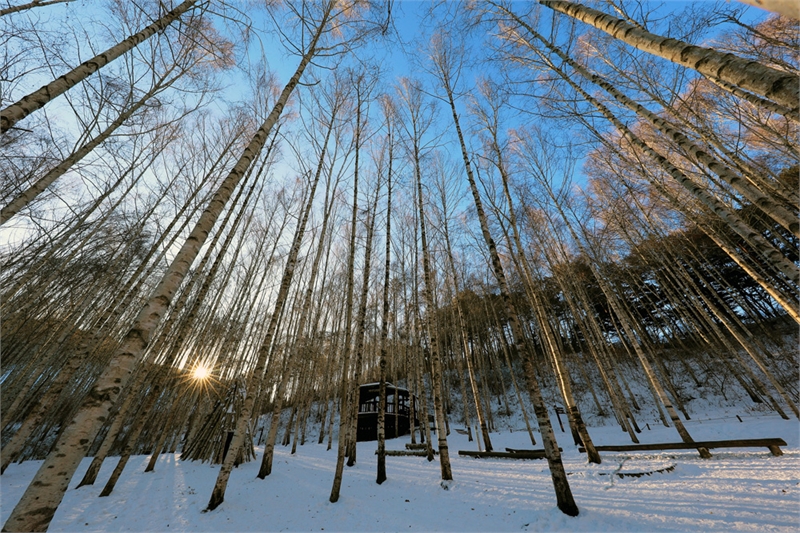 강원 인제의 자작나무 숲은 겨울 숲의 대명사다. 하얀 눈 위에 하얀 껍질의 자작나무가 빼곡히 늘어선 풍경은 북유럽의 동화 속 한 장면을 연상시킨다. 앙상한 가지 끝에 맺힌 상고대가 햇살에 반짝이는 순간, 신비로운 분위기는 절정에 이른다.
