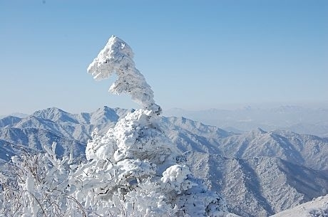 덕유산은 하늘이 선물한 은빛 성의(聖衣)를 걸쳤습니다.