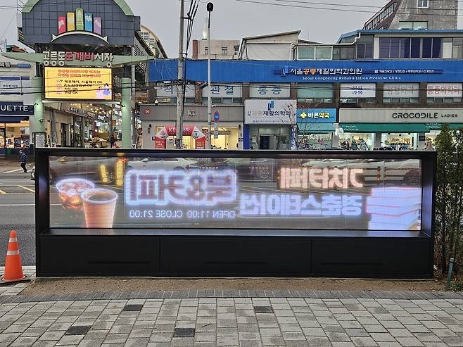 서울 노원구 투명 LED 전자 게시대의 도로쪽에서 본 모습. 시야를 가리지 않는다. 노원구 제공
