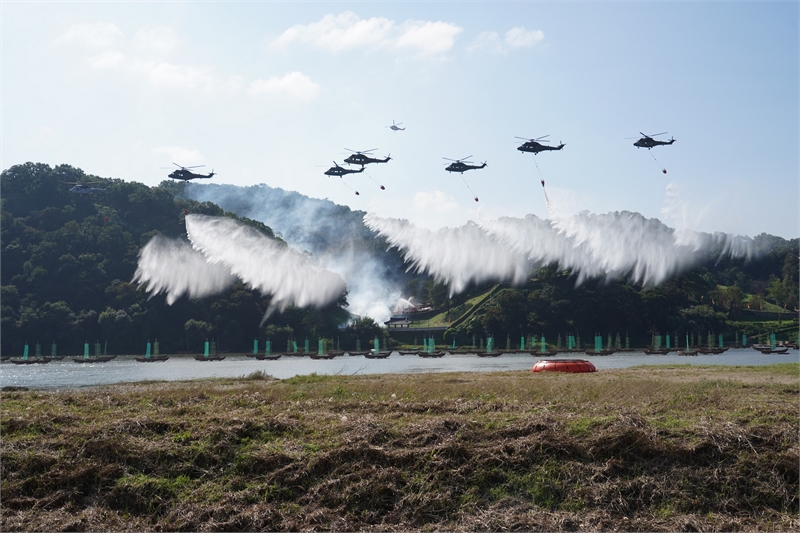 10월22일, 산림청, 국방부 등 유관기관 헬기가 산불진화 통합훈련을 하고 있다. 산림청 제공