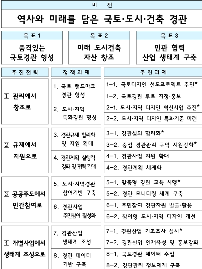 제3차 경관정책기본계획 수립의 기본방향. 국토교통부 제공