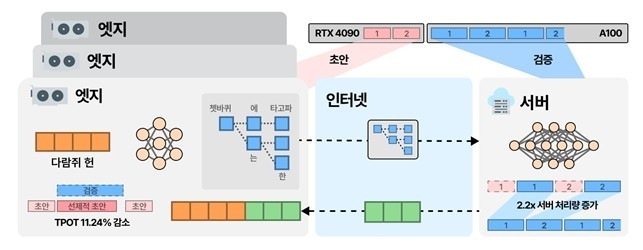 KAIST는 28일 전기및전자공학부 한동수 교수 연구팀이 데이터센터 밖에 있는 저렴한 소비자급 그래픽처리장치(GPU)를 활용해 대형 언어모델(LLM) 인프라 비용을 절감하는 '스펙엣지(SpecEdge)' 기술을 개발했다고 밝혔다.