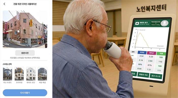 건물 리모델링 예상 애플리케이션(왼쪽), 휴대용 폐 기능 측정 기기. 부산디자인진흥원 제공