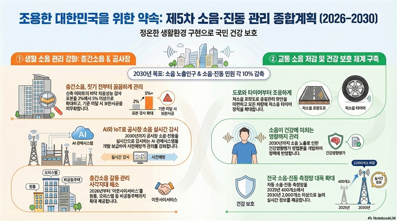 이번 계획은 층간소음과 공사장 소음 등 일상 속 소음·진동을 줄여 국민 건강 피해를 예방하는 데 중점을 둔 중장기 비전을 제시하고 있다.