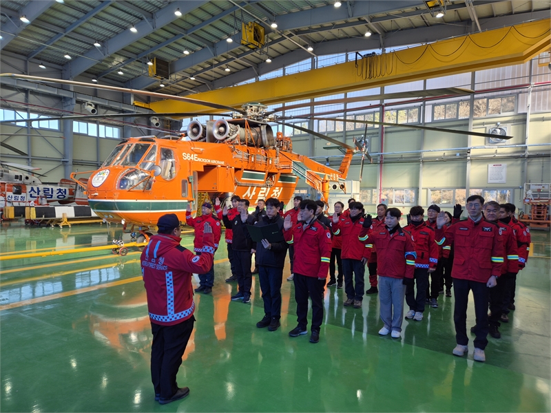 진천산림항공관리소는 2일, 전 직원이 참여한 가운데 '2026년 산림항공 안전결의 행사'를 개최하고 본격적인 산림재난 대응 임무에 돌입했다.