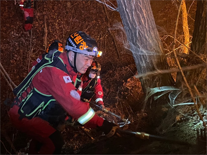 야간 산불현장에서 임무 수행하는 라상훈 팀장. 산림항공본부 제공