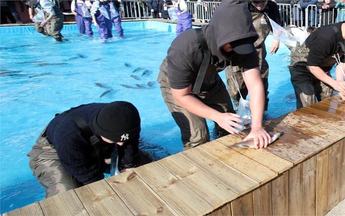 생각보다 송어가 많지 않다. 그래도 낚싯줄이 당겨질 때마다 곳곳에서 환호가 터져 나왔다.
