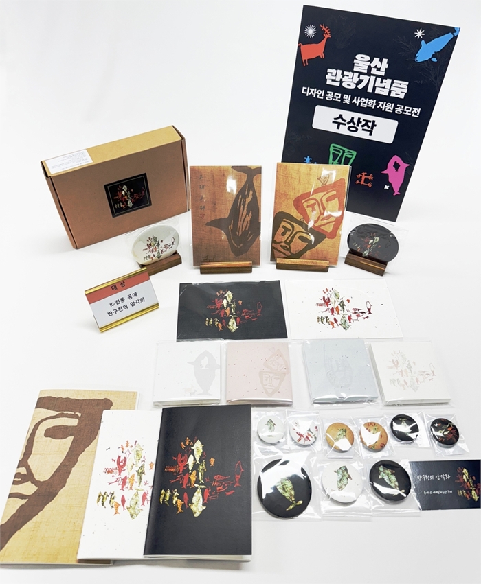 울산시는 관광기념품 디자인 공모전 결과, '반구천 암각화 문구세트'가 대상을 차지했다고 26일 밝혔다. 지난 9월 15일부터 10월 20일까지 진행된 공모에는 총 176건이 접수됐다. 시는 상품성, 디자인 완성도, 활용성, 시민 온라인 선호도, 실물 심사 등을 종합적으로 반영해 최종 15점을 선정했다. 대상을 받은 '케