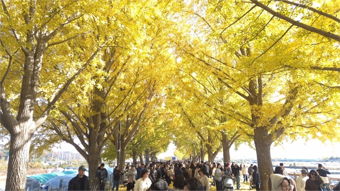 아산 곡교천 은행나무길 황금빛 가을 정취 절정 11월의 늦가을 햇살이 따스한 오후, 충남 아산 염치읍 곡교천으로 향했다. 차창 밖으로 스쳐 지나가는 풍경이 점점 노랗게 물들어간다. 멀리서부터 황금빛 물결이 일렁이는 게 보인다. 곡교천 은행나무길이다. 충무교에 다다르자 예상했던 대로 차량 정체가 시작됐다. 시 관계자의
