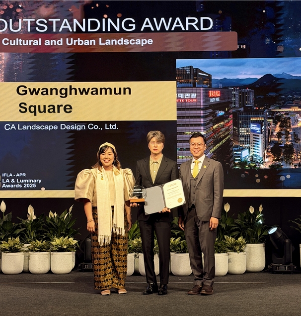 CA조경기술사사무소가 세계조경가협회(IFLA) 주관 '2025 아시아·태평양 지역 조경 어워즈(IFLA APR LA Awards 2025)'에서 두 프로젝트로 대상과 최우수상을 동시 수상하며 한국 조경계의 위상을 드높였다. 대상(Outstanding Award)을 받은 '새로운 광화문광장'과 최우수상(Excellence