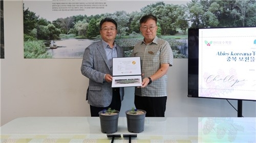 충남 태안 천리포수목원은 4일 멸종위기종인 구상나무 보전을 위해 국립백두대간수목원에 구상나무 '프로스트레이트 뷰티' 묘목 2그루를 기증했다.