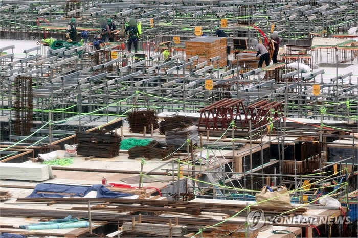 11일 서울 시내 한 아파트 건설 현장에서 작업자들이 작업을 하고 있다.