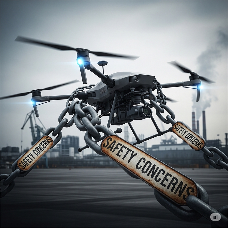 안전 문제로 인해 드론 산업화가 지연되고 있다는 이미지. AI 생성 이미지