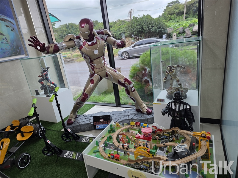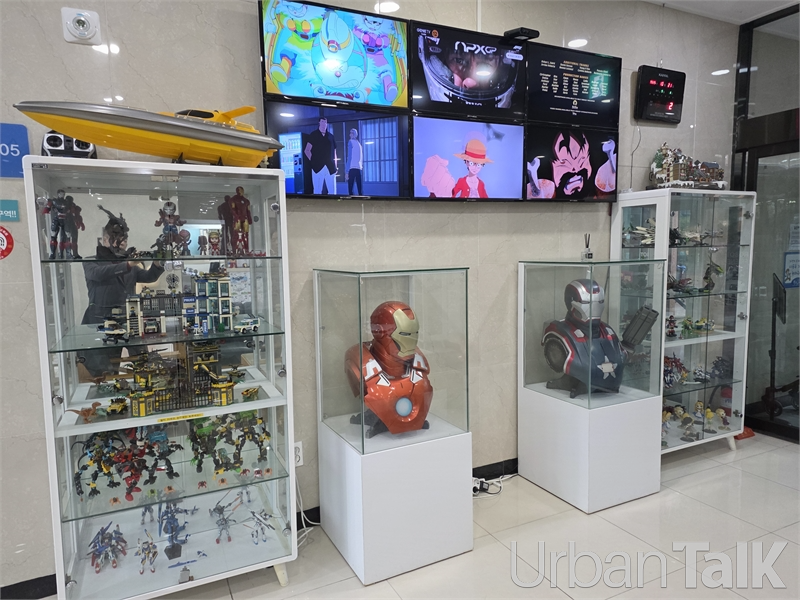 "부모님도 즐기고 아이들도 좋아하는 컨셉으로 잡았습니다. 각 층 로비마다 다양한 피겨를 전시했어요. 아이들은 어리니까 부모님들이 젊잖아요. 30~40대 부모님들의 어린 시절과 연결되는 콘텐츠가 필요하다고 생각했습니다.(백 대표는 1층 로비의 아이언맨은 1,800만 원을 들여 홍콩에서 수입했다고 귀띔했다.)