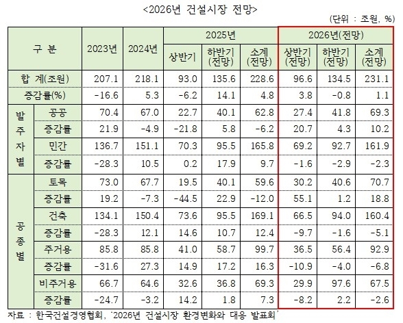 2026년 건설 시장 전망. 한국건설경영협회 제공