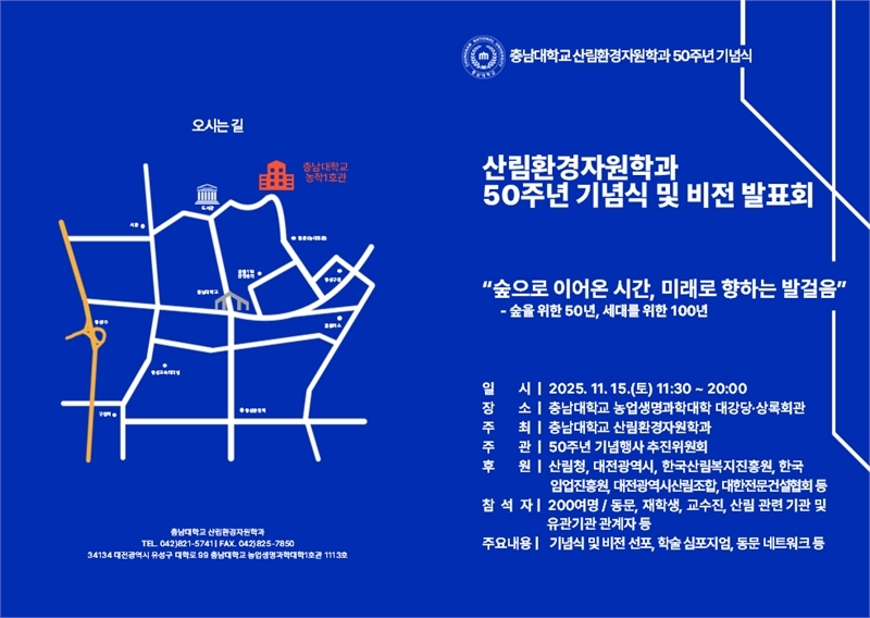 이번 일련의 행사는 충남대학교 산림환경자원학과가 걸어온 50년의 발자취를 넘어, 기후위기 시대에 자연과 공존하는 미래 100년의 비전을 제시하는 상징적인 여정으로 평가받고 있다.