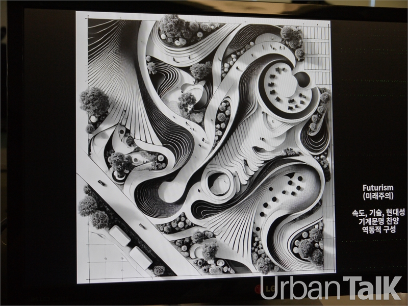 그는 AI가 미술사조 기반으로 설계작품을 만드는 과정도 소개했다. 같은 조경 작품을 야수파, 추상표현주의, 미래주의, 다다이즘 등 사조별로 AI에게 요구하니 공원 구성 자체가 달라졌다. 생성형 AI는 마치 오래전부터 해오던 일인 것처럼 손쉽게 뚝딱 처리했다.