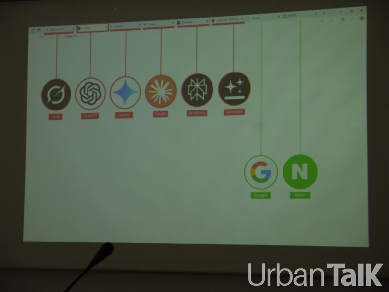 그는 PPT 1페이지에 자신의 PC 바탕화면을 띠웠다. GPT, Claude, Gemini, Grok 등 서로 다른 ‘성향’을 가진 6개의 AI를 PC 바탕화면 즐겨찾기에 올려뒀다. 그는 하루 업무 대부분을 AI와 함께 시작한다.