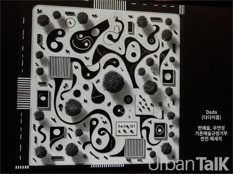 이 대표는 AI를 활용해 미술사조 기반의 설계작품을 비교설명하고 있다. 위 작품은 다다이즘을 반영한 작품.