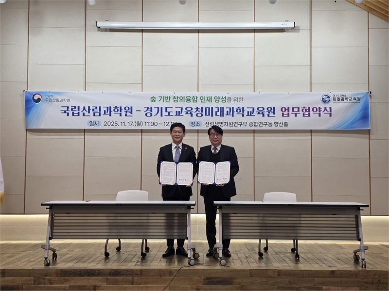 산림청 국립산림과학원과 경기도교육청 미래과학교육원이 기후위기 시대 미래세대 환경교육 강화를 위한 전략적 파트너십을 구축했다.