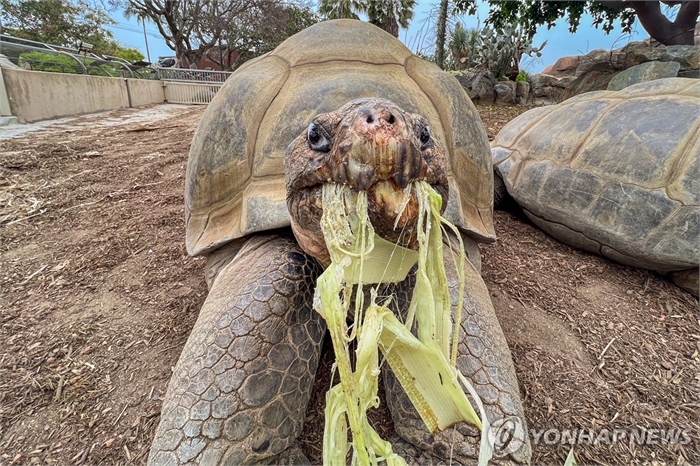 식사 중인 갈라파고스땅거북 그래마 [San Diego Zoo Wildlife Alliance / AP=연합