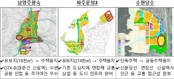 용도 전환을 통한 공급은 주변 기반시설이 이미 갖춰져 있어 개발 속도가 빠르다는 장점이 있다. 특히 수원당수는 내년 중 착공을 추진한다.