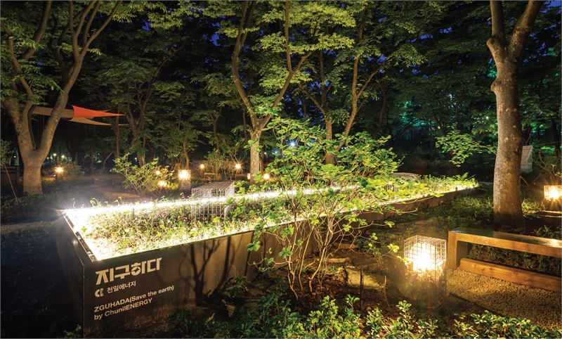 천일에너지가 올해 서울국제정원박람회에 출품한 '지구하다'. 그늘 속에서도 강인하게 자라는 식물들을 배치해 정원의 정서를 담아냈다. 서울시 제공