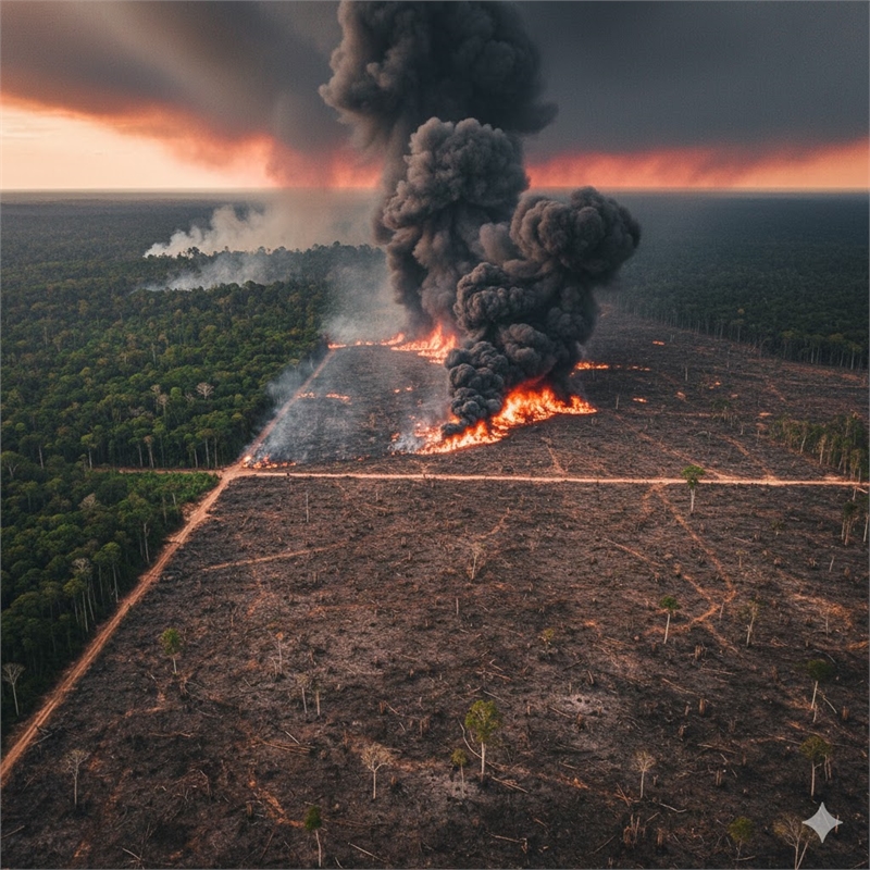첫째, 산림 훼손(De-forestation)이다. 대규모 농경지 개간, 특히 팜유나 대두 같은 상업 작물 재배를 위한 개간과 목축업 확장이 주요 동인이다.