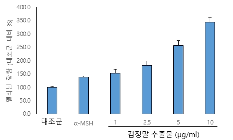 특히 이 추출물은 멜라닌 생성을 유도하는 표준물질인 알파-멜라닌세포 자극 호르몬(α-MSH)보다 약 2배 높은 멜라닌 생성 효과를 나타냈다.
