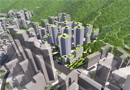 수변 경관과 쾌적한 주거환경을 고려해 3종 주거지역은 용도지역계획을 유지하고 2종(7층 이하)을 3종 주거지역으로 용도지역 상향해 최고 35층 13개동 1천260세대(임대 257세대)를 공급한다.