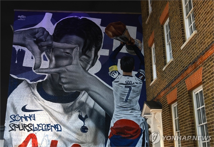 토트넘 하이로드 견물 벽에 마련된 손흥민 벽화