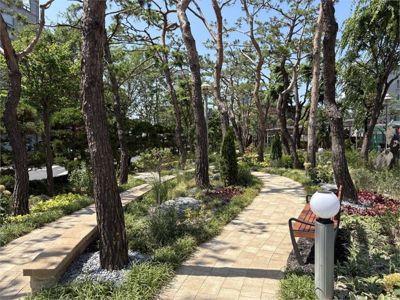 고려대 구로병원은 2,500㎡ 규모로 기존 소나무 숲 아래 산책로를 조성하고 삼색버들 등 17종 3,644주, 수크령 등 15종 8,850본을 심어 환자와 보호자들에게 치유와 휴식 공간을 제공한다.