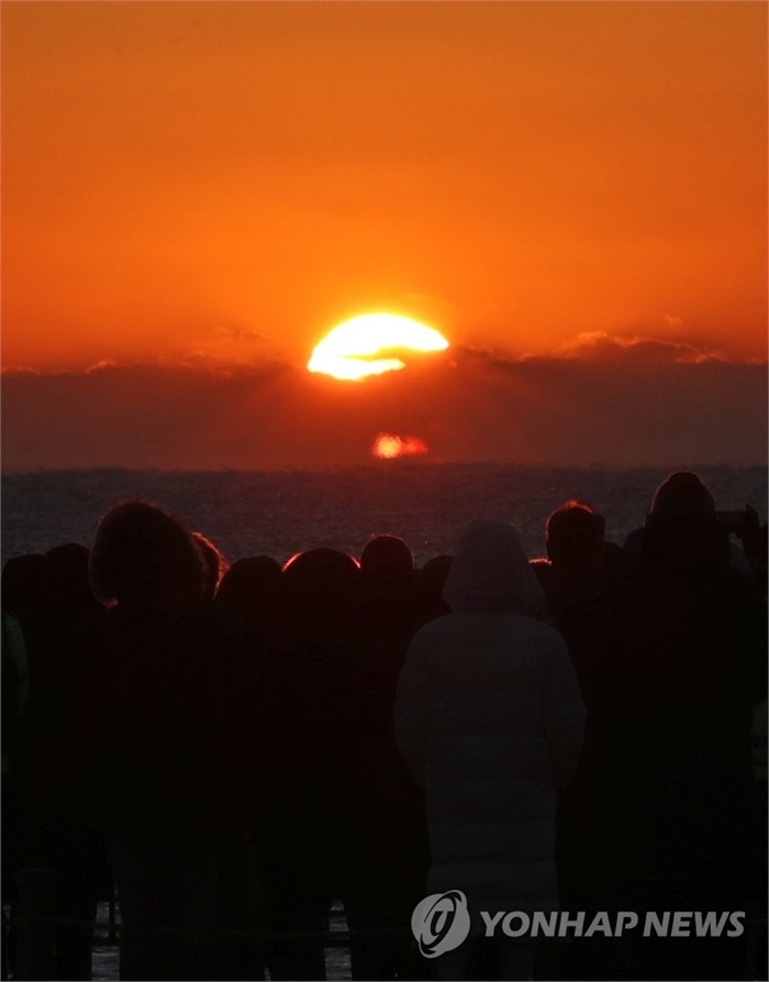 울주군 간절곶에서 2022년 첫 해가 뜨고 있다.