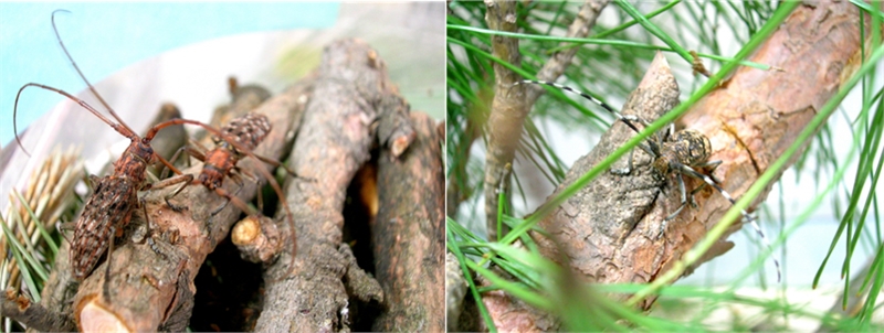 소나무재선충병 매개충인 솔수염하늘소(왼쪽)와 북방수염하늘소(오른쪽). 산림과학원 제공